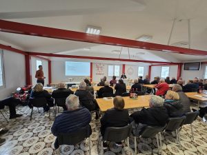 Za zaključek smo prisluhnili še enemu izobraževalnemu predavanju. Mojca Mihevc je predstavila tematiko srčnega zastoja, prve pomoči ter uporabe avtomatskega defibrilatorja.